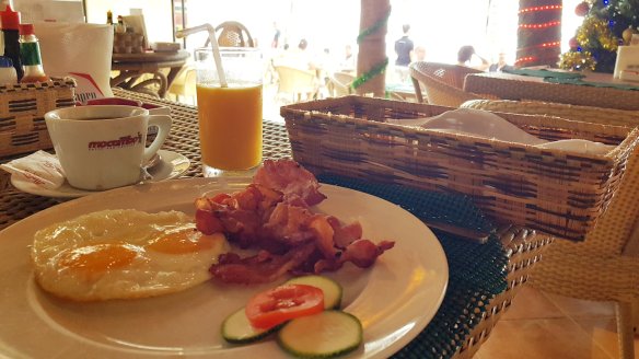 最後一天則是7:00的飛機,所以使用機場旁邊的Waterfront旅館。最後一天身上沒有披索只好在旅館吃。