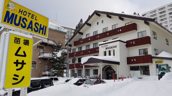 在苗場三晚的飯店是透過Agoda訂的苗場旅館Musashi,距離苗場王子飯店滑雪入口,走路約十分鐘。看似簡單,有時大雪紛飛也不是太好走。我們有一半是搭公車(150日元),從越後湯澤到苗場王子飯店巴士的最後一站「西武Villa」就在這個飯店附近。