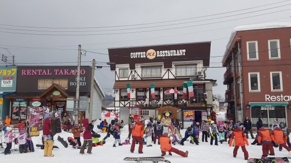 我們是跟日本滑雪中毒租裝備,穿戴過程也算方便,在六號館二樓換鞋,板子則是在六號館一樓出口拿,不用拿著板子走來走去。