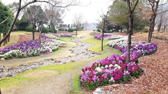 我們是在二月底造訪,整個淡路島夢舞台與明石海峽公園都沒有什麼人,公園裡看到的人大概十個人不到。當初是為了2002淡路花博建造,在這個淡季頗有蚊子館的感覺。雖說如此,維護狀況還是很好,與台灣常見品種一樣的八重櫻、河津櫻也盛開了。