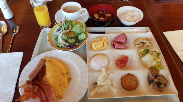 兩間房只有一間因鈦金卡含三張早餐卷,在櫃檯談心之後,櫃檯多給一張早餐卷,四大兩小六個人(小孩六歲以下不用錢)正好都可以使用原價2500日幣的早餐。
