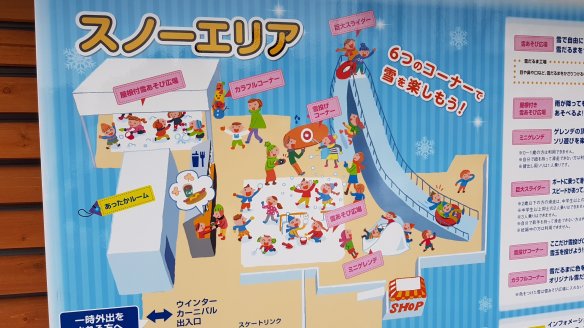 我們在第三區中間去了雪地體驗區,要額外入場費但是很便宜。這邊有溜冰區,要額外租鞋子,加上冰上溜滑梯、堆雪人區。