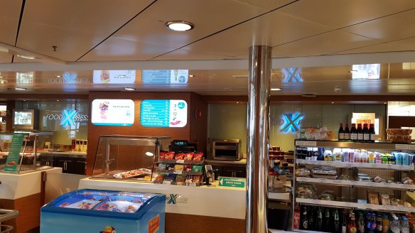 這個渡輪比我想像中大很多,因為可以承載汽車貨車,所以跟德國丹麥的船型很接近。上面也有餐廳,是丹麥克倫、瑞典克倫同時標價。