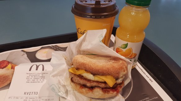 吃了早餐,用的是瑞典幣。北歐不用鈔票基本沒有問題,我的德國銀行卡V-Pay直接從歐元付款,查了匯率也算可以,跟Google很類似。體驗兩地人民交通狀況後,再次回到丹麥。