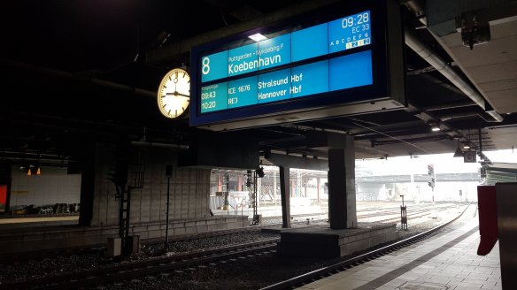 早上9點多到達漢堡車站,接續往哥本哈根的Euro City。這是一台丹麥國鐵經營的車,座椅比德國國鐵舒服不少,頭等艙德國是2-1配置,丹麥國鐵也是。不過二等艙,德國是3-2配置,丹麥則是2-2配置。