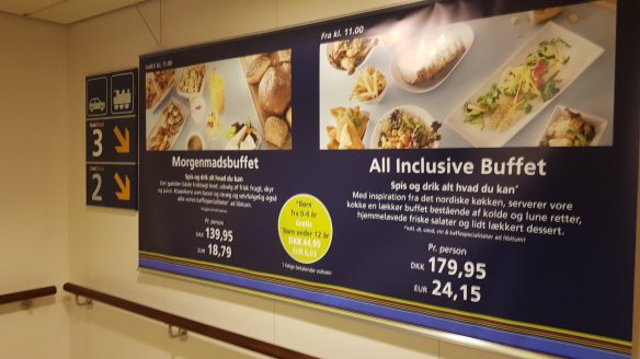 渡輪時間是45分鐘,北海的渡輪都相當大,這裡有兩三家餐廳與超商,價格有歐元與丹麥克朗標價。