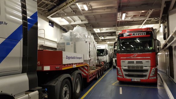 火車停車處旁邊就是貨車與汽車停車處,司機在渡輪行駛期間也是要上到休息區休息。