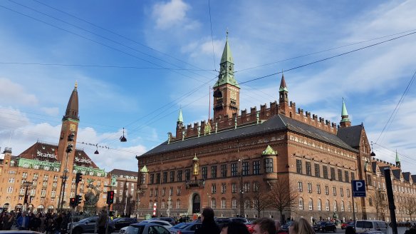 因為時間還早,佔到一個景觀甚好的窗戶位。才發現原來這個看似河的地方,原來是Sortedam湖,所幸太陽此時已經露出頭,搭配周遭建築物,非常漂亮。
