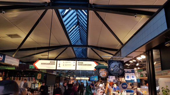 圓塔之後繼續往遠離市區的方向,經過傳統市集 Torvehallerne Copenhagen。玻璃建築物的市場很有新穎感,裡面的魚攤也很乾淨。差點想買牡蠣來吃吃,不過快打烊有賣的攤子已經比較少了。