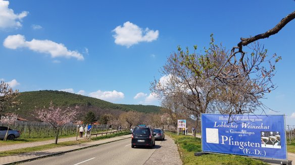 這其實是長達85公里旅遊路線葡萄酒之路(Weinstraße) 的一部分,為了推廣觀光,附近的酒莊推出了不少活動,包含杏花皇后公主選拔、杏花道標誌設計等。