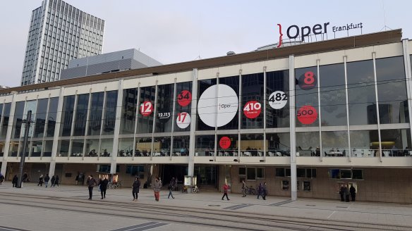 歌劇院就在 Willy-Brandt 地鐵站旁,一出站就到,我則是從 Zeil 購物街一路走過去。對面就是前歐洲央行總部,歐元標誌還在那邊。