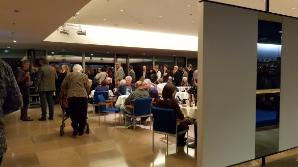 一樓有可以訂位的餐廳,西裝鼻挺的觀眾趁25分鐘的休息時間,還有機會喝葡萄酒以及起司之類的小點。