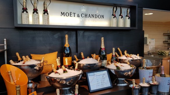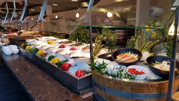 七樓是自助餐,也是高朋滿座。連自助餐都可以選Moët。