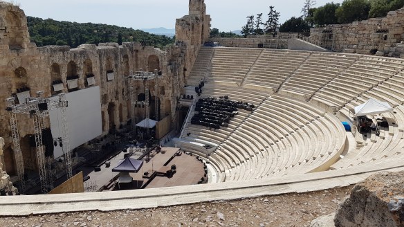 Theatre of Dionysos 戴奧尼索斯劇場,建於西元前 600 年,只是用來祭祀神明用的場合,而漸漸擴充成能容納 15000 的開放式大劇場。也稱作 “酒神劇場”。