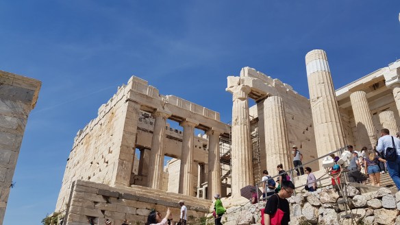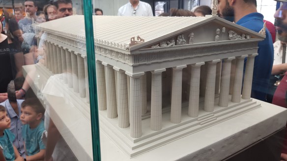 帕德嫩神殿 Parthenon 後來在博物館才知道有一段波折的歷史。它在希臘鼎盛時興建,後來經過大火,建築主體就開始遭到破壞。在希臘被土耳其人佔據期間甚至被改成清真寺,後來不知道什麼戰爭被一炮打壞了。