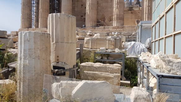 希臘與歐盟一起進行復舊計畫。可能因為歐盟也參加吧,走的是德國那種去找附近一磚一瓦不放過的那種路線,看起來短期間不會修好。