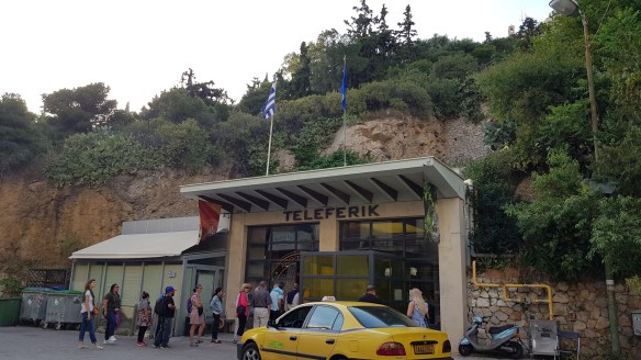 可以搭乘藍線到 Evangelismos 站下車,不過我直接從體育館走過去也不遠。從地圖上找到一個距離頗長的上坡,先是上坡之後是樓梯,最後會來到纜車站。蠻多人也計程車來。