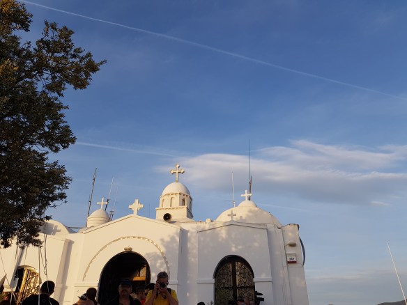 在觀景台上有教堂,黃昏有彌撒儀式,也有軍人來降希臘國旗的表演活動。