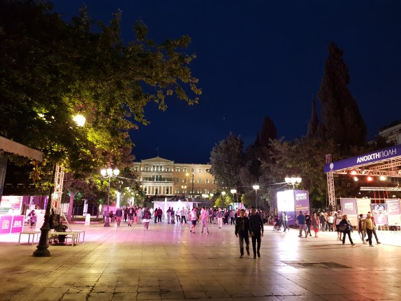 雅典的主要廣場,位於希臘國會之前,得名於1843年9月3日奧托國王在起義後批准的希臘憲法。我其實白天有經過,不過晚上才拍照。