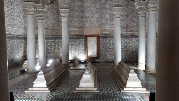 徒步約20分鐘,走到撒丁墓地 Saadian Tombs,這裡是 Saadi王朝的蘇丹艾哈邁德曼蘇爾(1578-1603)及其家人的墓地,在1917年被發現,室內處華麗雍容。