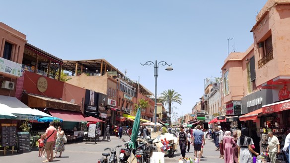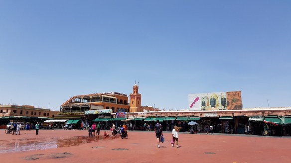 再徒步約20分鐘,走到老城區市集,從德吉瑪廣場 Djemaa el-Fna進去,雖然果汁便宜與有名,天氣太熱沒有買果汁。