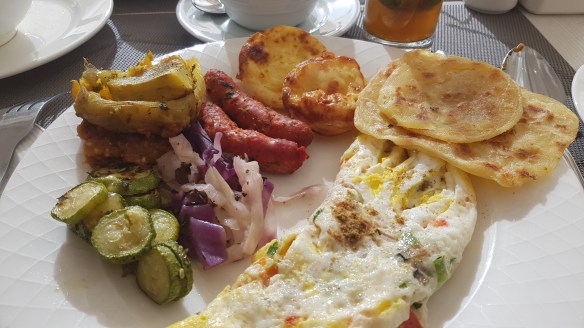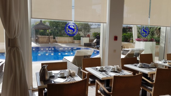 終於可以在飯店吃個早餐。Sheraton的早餐對鈦金會員免費,否則原價要240MAD。