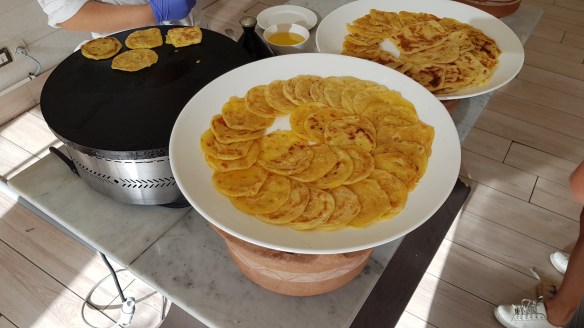 有傳統的煎餅,很像蔥油餅。厲害的是有專門放在烤盤上加溫,酥酥脆脆很好吃。