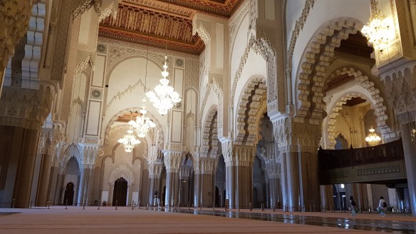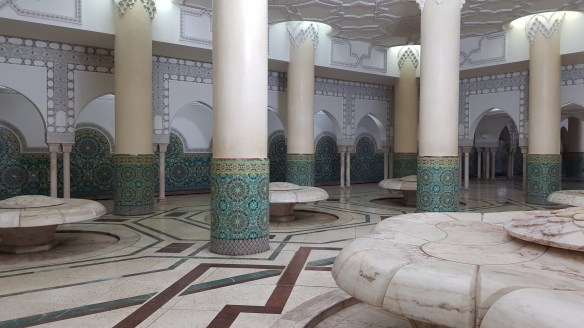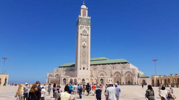吃飽喝足,開始行程。為了尊重當地人,我離開飯店後,盡量連水都不喝。第一個景點就是著名的哈桑二世清真寺 (Hassan II Mosque)。