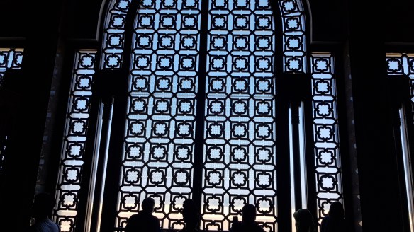 面向海邊的窗戶。包括這個以及天窗,在天氣熱是都會打開,這個清真寺沒有冷氣,跟阿布達比不一樣。