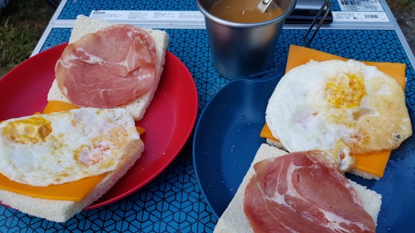 今日食記: 早上跟中午都是自製三明治,前一陣子入手新的小煎鍋,就是設想露營煎蛋的狀況。