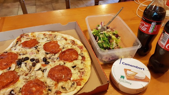 晚上則是嘗試營地餐車的薄片披薩,加上一點生菜。