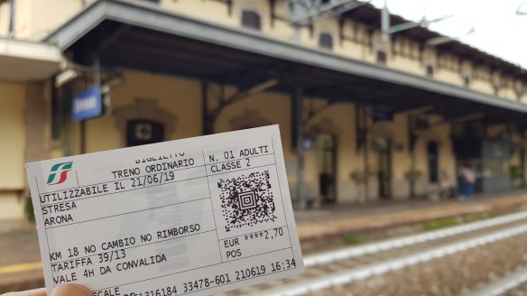 回到Stresa,因為船班延遲我們往Arona的船已經開走。靈機一動決定來搭火車,回到Arona其實做區間車只要四站2.75歐元,比船速度快且便宜。這是這個車站實在有點破破的。