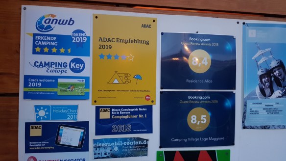 Camping Village Lago Maggiore 是ADAC四星級營地,唯一沒有的就是自己的超市,但是門口對面其實就是一家超大的超市。營地的活動很多,都是以英德義法四國語言呈現。