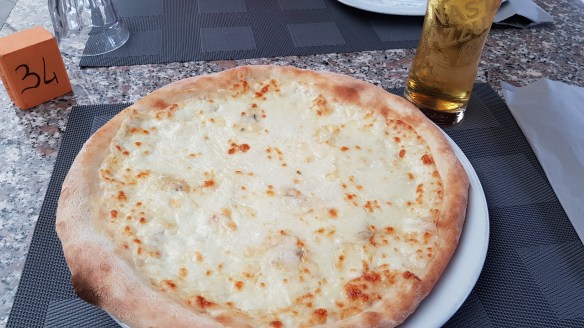 餐廳提供披薩、咖啡、酒精飲料。咖啡酒類大致與德國類似,這是咖啡有吧台價與座位價的差別。九吋披薩為8-9歐元,比德國便宜一些,我猜義大利的低物價也是吸引德國家長的原因。