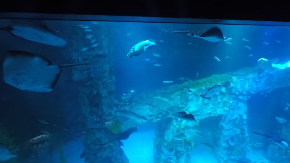 我們則是趁中午人多時,跑出來吃飯與逛水族館。水族館雖然在百貨公司裡,但是大水族箱、白鯨、海豹、企鵝等海洋生物的收集也頗為齊全。