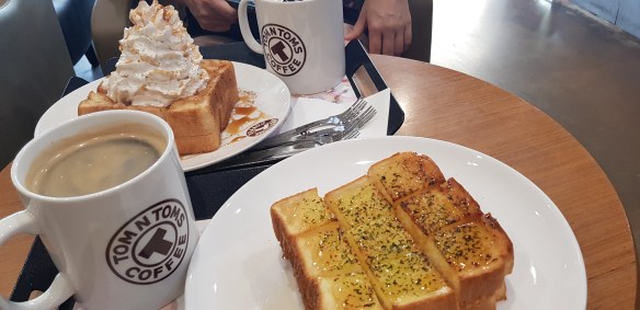 早餐我們去了在萬楓Fairfield的對面 Tom N Toms,其實也就是台灣早餐店常見的厚片,不過這邊裝飾地非常好吃。