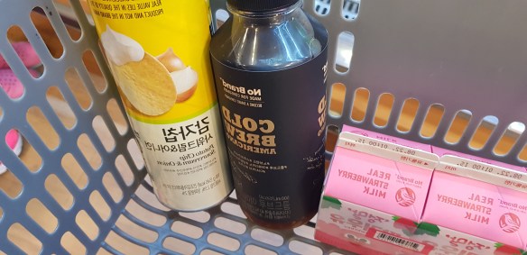 No Brand是小超市,商品都是超市直接找廠商製作,有點像Costco的自有品牌。物美價廉,譬如品客洋芋片復刻,價錢是1000韓元,約是品客的三分之一,還有地瓜口味。冰咖啡與香蕉牛奶也好喝,我們也帶了不少泡麵餅乾。