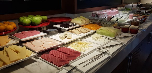 早餐在飯店吃,自助餐的內容跟歐洲差不多,起司種類多了一些,火腿種類少了一些。