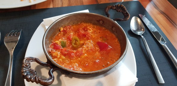 服務人員問我要那種蛋,我問有沒有土耳其口味的,結果來了這個土耳其的番茄炒蛋。看路上的早餐店,也真的是這個口味。
