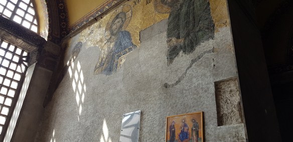 奧斯曼土耳其人在1453年征服君士坦丁堡,蘇丹穆罕默德二世下令將大教堂轉變為清真寺,還將鐘鈴、祭壇、聖幛、祭典用的器皿移去,用灰泥覆蓋基督教鑲嵌畫。
