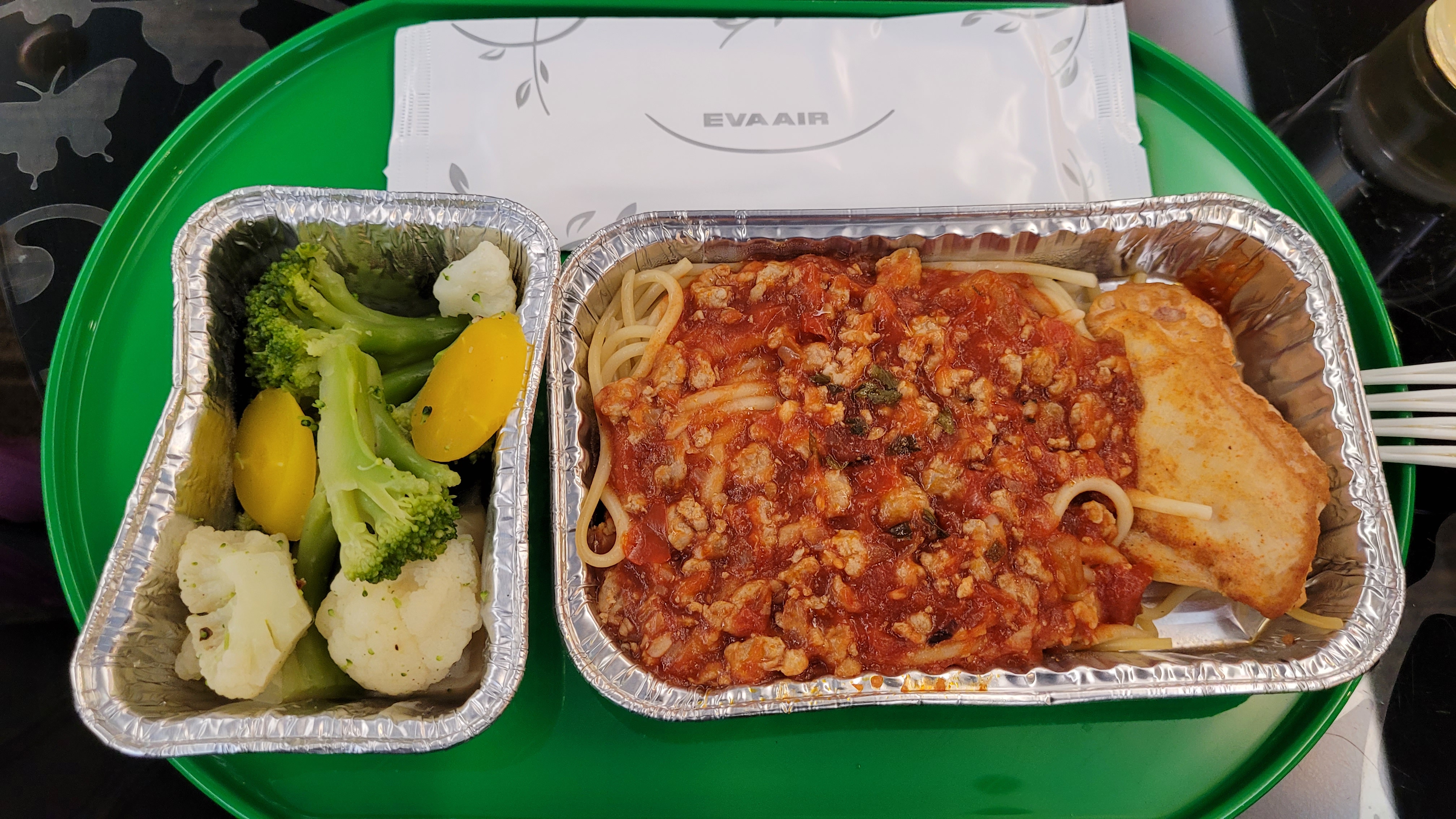 結果到實際用餐,也只是把點餐系統的餐點實體化,就是經濟艙的餐點而已。麵倒不是太難吃。