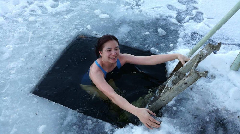 在冬天應該是給湖面挖洞冰泳的。官網上有冬天的照片。