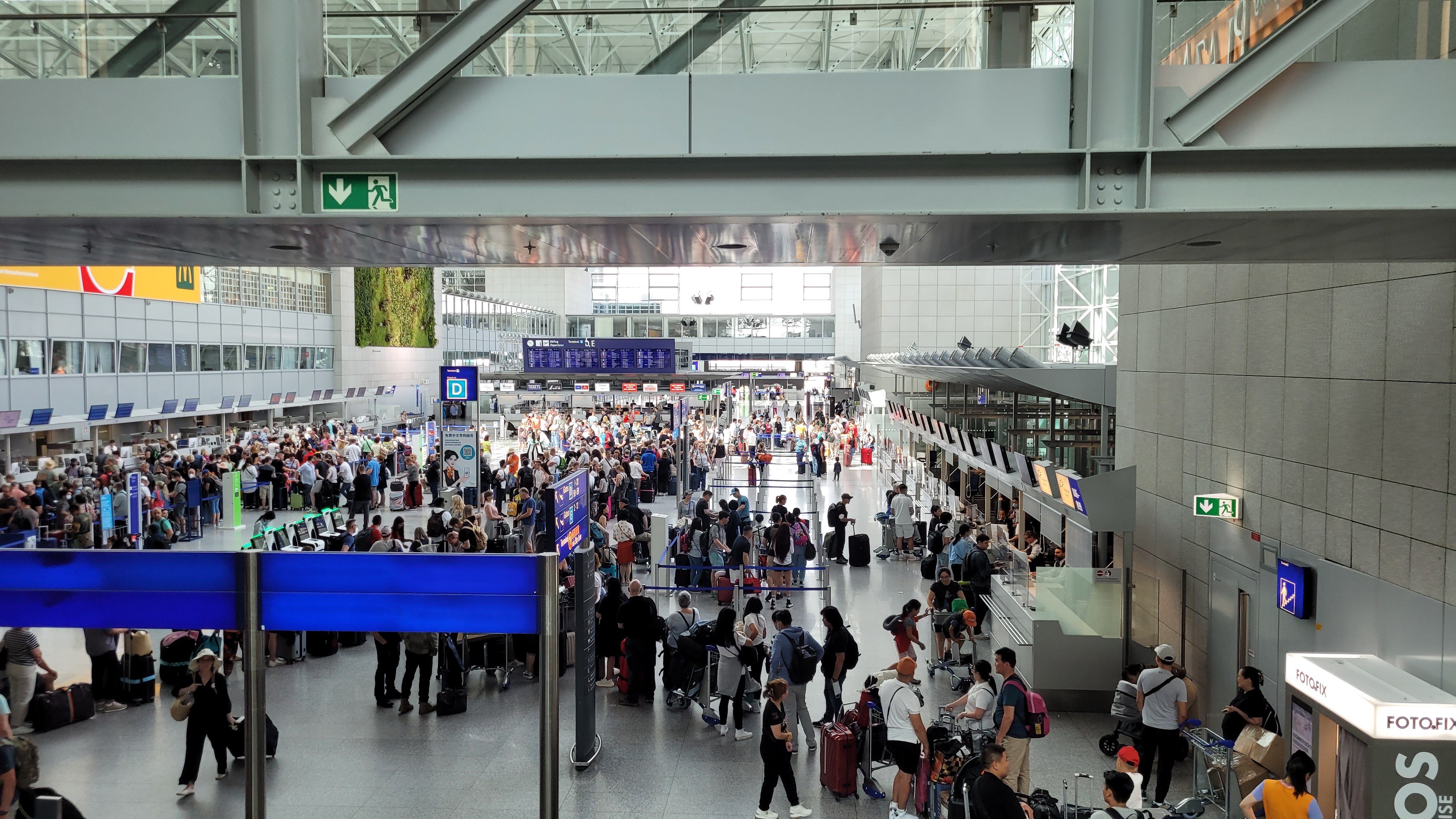 星期六早上,雖然說假期中,機場人也實在太多。歐美旅行爆發潮真不是開玩笑,一路上看來真的是配套沒跟上,安檢、接駁車、航站間的Skyline還只能單向等,感覺問題還真不少。