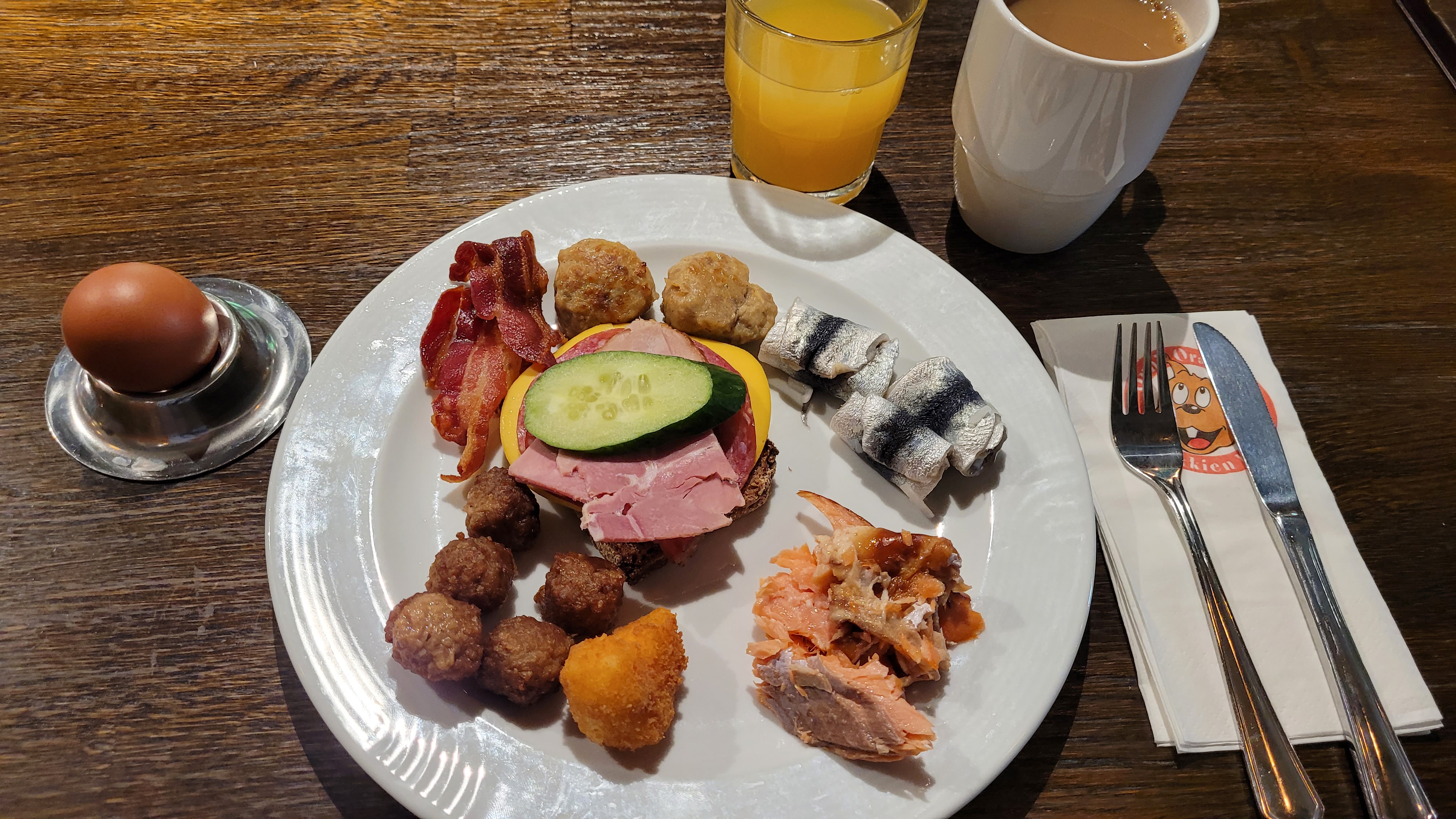 早餐環境不錯,有Hering、Samon魚類,也有各式肉丸。搭配芬蘭特有的甜黑麥麵包。
