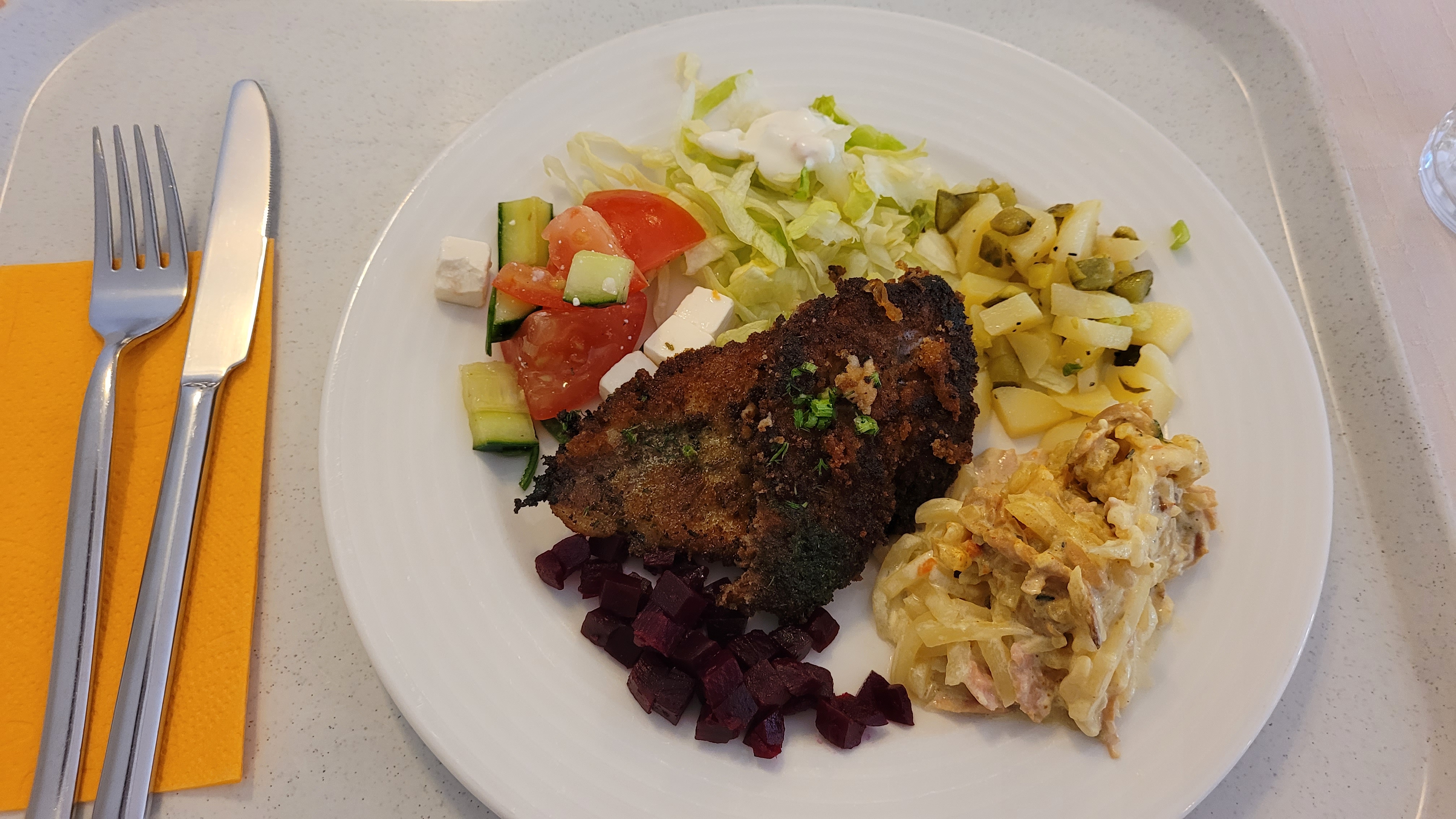 自助餐11€,享受芬蘭原汁原味的美食,沙拉番茄,加上烤魚與馬鈴薯。當然還有甜菜根。