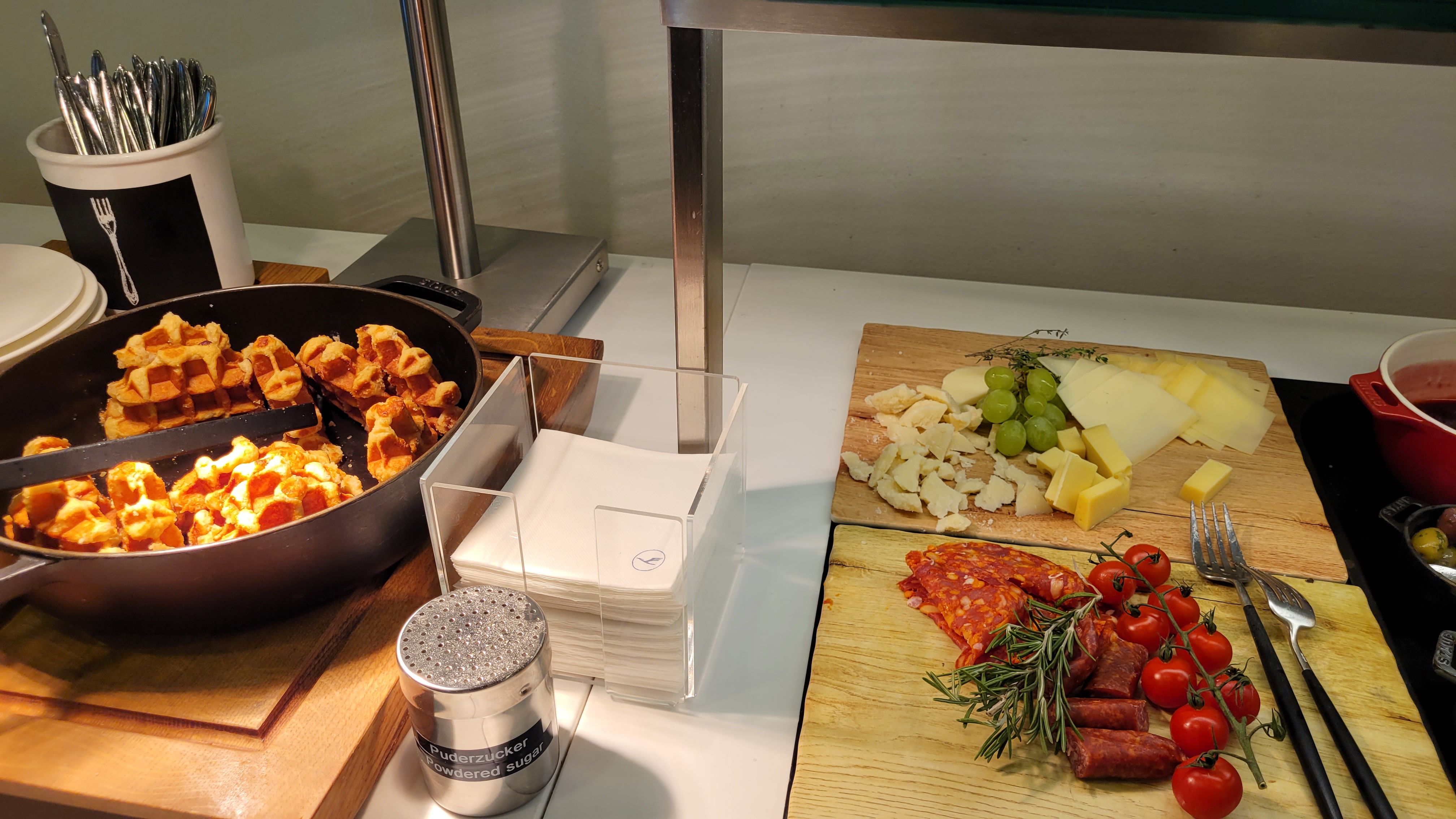 起司還不錯,至少飯店早餐比較少見到乾酪。擺盤也時時進行調整。