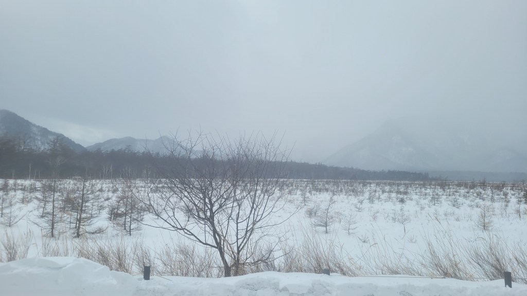 路上經過之前來過的戰場之原、湖畔步道等。戰場之原基本上已經被雪覆蓋,不過看得出有裝備精良的人下車,能夠走到什麼程度就不知道了。