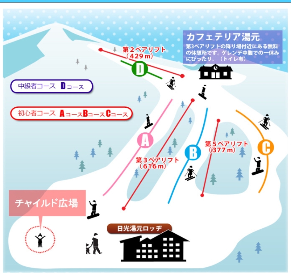 從公車站走到湯元溫泉滑雪場。這是一個四坡道滑雪場,非常陽春。