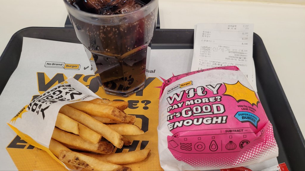 Nobrand的超市是我每次都爆買的地方,展會邊就有的 Nobrand Burger 當然要去吃吃。漢堡肉還算不錯,不過培根並不焦脆,在培根增量版的漢堡裡更是明顯,只能說比連鎖店好一點。