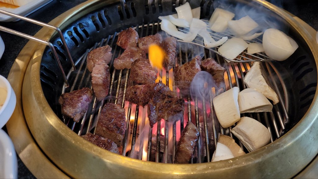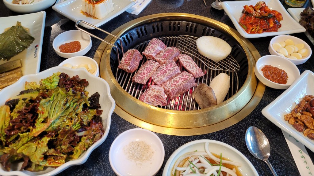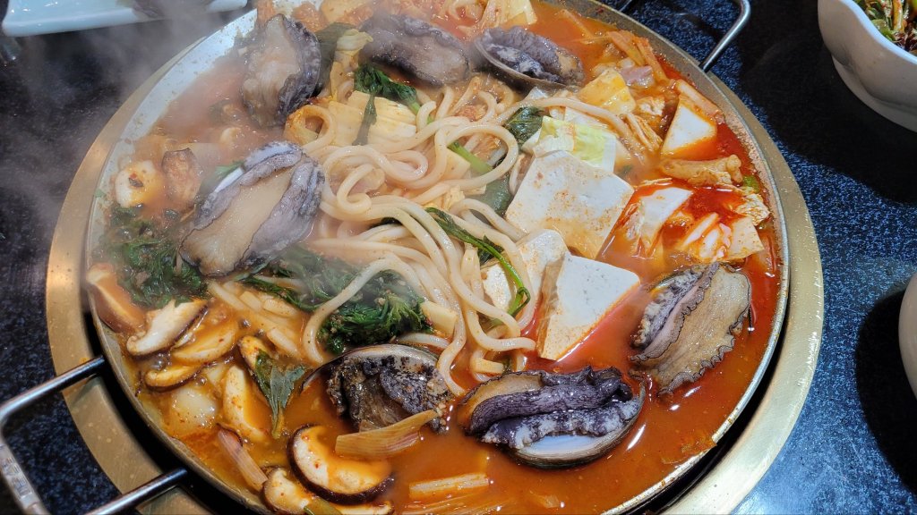 有個有趣的名字叫「大韓民Cook」。點了韓牛、韓豬、還有生鮑魚鍋(不確定,反正是會動的貝類)。韓牛果然是被忽視的美食,真的很優。鮑魚鍋最後加飯煮粥,好吃。
